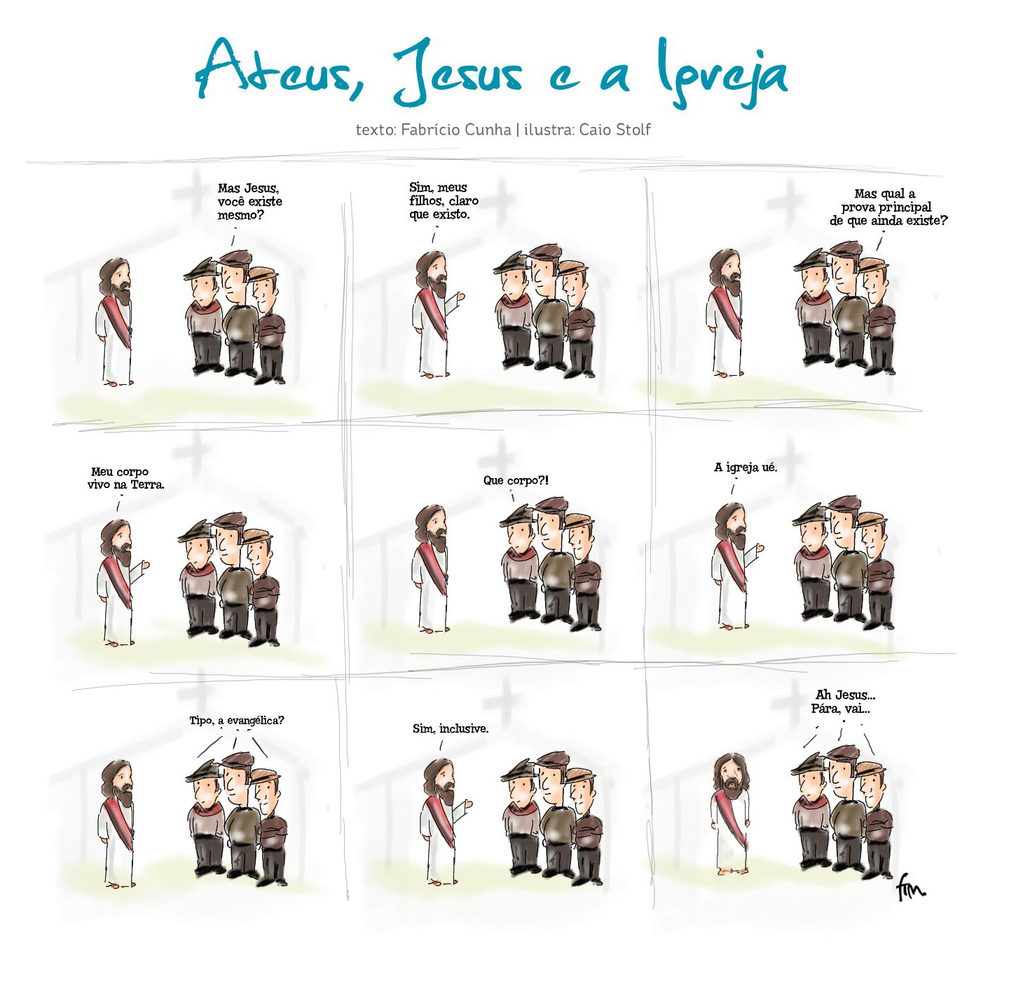 Posted in Imagens and tagged ateus, evangélicos, fabricio cunha, igreja, jesus, tirinha.